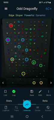Izaicini sevi un atklāj jaunas iespējas savā mājās izveidotajā kāpšanas sienā! Mūsu inovatīvā lietotne izmanto eksperimentālus ģenerēšanas algoritmus, lai zibenīgi radītu bezgalīgi daudz unikālu kāpienu problēmu. Neatkarīgi no tā, vai meklējat jaunu izaicinājumu vai vēlaties pilnveidot savas prasmes, jūs varat pielāgot grūtības pakāpi un garumu, lai radītu tieši jūsu vajadzībām atbilstošus maršrutus. Pat ja algoritms rada gandrīz perfektus rezultātus, problēmas ir ērti rediģējamas dažu sekunžu laikā, sniedzot iespēju uzlabot arī jūsu maršrutu veidošanas prasmes. Protams, varat arī viegli izveidot savas pielāgotās problēmas no nulles.