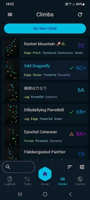 Sekojiet līdzi savam progresam, saglabājot izpildītās problēmas un reģistrējot veiksmīgos kāpienus. Meklēšanas, filtrēšanas un šķirošanas iespējas palīdzēs jums ātri atrast piemērotākos treniņu maršrutus. Aktivizējiet Pro versiju (pieejama kā pirkums lietotnē), lai piekļūtu vēl jaudīgākām funkcijām, piemēram, uzlabotiem ģenerēšanas rīkiem ar iespēju izvēlēties konkrētus satvērienus un zīmēt trajektorijas, detalizētai statistikai ar siltuma kartēm sienas maksimālai izmantošanai, kā arī uzlabotam sienas redaktoram. Atcerieties, ka alpīnisms un klinšu kāpšana ir bīstama aktivitāte. Pirms mēģināt jebkuru problēmu, vienmēr novērtējiet tās drošību.