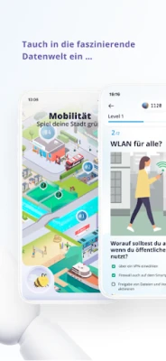 Iegrimstiet interaktīvā virtuālajā pilsētā un atklājiet, kā datos balstītas tehnoloģijas ietekmē katru Jūsu dzīves aspektu. Rotaļīgā un saistošā veidā papildiniet savas zināšanas par digitālo pasauli. Jo vairāk satura Jūs izpētīsiet un uzdevumu pildīsiet, jo krāsaināka un dzīvīgāka kļūs Jūsu digitālā pilsēta, simbolizējot Jūsu pieaugošo izpratni. Lietotne aptver aktuālas tēmas, piemēram, Darbs 4.0, Nākotnes mobilitāte un Telemedicīna, kā arī sniedz padziļinātu ieskatu tādos tehnoloģiskajos risinājumos kā mākslīgais intelekts, lielie dati un lietu internets.